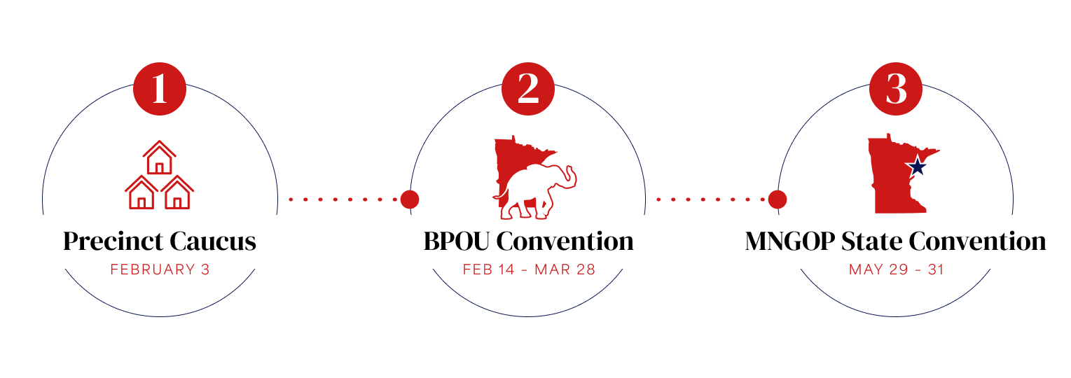 On February 3, 2026, local Republican Party of Minnesota units will host precinct caucuses, the first step in reaching the 2026 GOP State Convention. Attending precinct caucus and participating in the endorsement process allows you to massively amplify your voice in selecting who will serve as the Republican candidate for Governor in November.